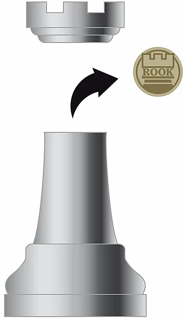 Solve the Chess Puzzle's challenge and find the lucky coin sealed inside! Hanayama Chess Piece Puzzles are brain teasers built into high quality chess puzzle pieces. Each cast metal, chrome-plated chess piece requires a different solution to open it and collect the cast-plated gold token hidden inside.